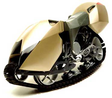 СНЕГОХОД (также называемый "снежная машина" в северных регионах США: Аляске и Новой Англии) - это наземное транспортное средство дла передвижения по снегу и льду, которое приводится в движение при помощи широких гусениц и управляется парой лыжных полозьев, находящихся спереди машины. Помимо снегоходов, существуют другие машины для перемещения по снегу - это аэросани, изобретенные в России Игорем Сикорским, которые также перемещаются на лыжах при помощи тяги пропеллера авиационного двигателя.Гусеницы снегохода обычно изготавливаются из резины, хотя некоторые современные снегоходы оснащены гусеницами, изготовленными из композитных кевларовых материалов (или с кевларовым кордом). Корпус снегохода, как правило, изготавливают из алюминиевых сплавов, стали или стеклопластика. В качестве источника тяги на них устанавливают двигатель внутреннего сгорания, который вращает гусеницы. Чаще всего используются 2-х тактные двигатели, работающие на бензине, но в последнее время все интенсивнее внедряются четырехтактные двигатели (например, на снегоходах фирмы Ямаха). Во время движения длина контакта гусеницы со снегом составляет около 90 см, а давление на снег составляет примерно. 3 кПа. Низкое давление на субстрат позволяет снегоходу вместе с водителем, не проваливаясь, скользить по поверхности снежного покрова. Водитель сидит на снегоходе верхом так же, как мотоциклист на мотоцикле, и управляет им, поворачивая с помощью руля размещенные спереди лыжи. Снегоходы могут использоваться для передвижение не только по снегу. В летний период фанаты спортивных соревнований на снегоходах могут устраивать заезды на различных субстратах: на траве, на асфальте, а также пересекать водные преграды. Выделяют три основных вида спортивных соревнований на снегоходах: снежный кросс, триал и горные соревнования. ![]() Принципиальная схема снегохода ![]() Трак (гусеница) для снегохода ВОЗМОЖНОСТИ СОВРЕМЕННЫХ СНЕГОХОДОВ Благодаря новым технологиям, примененным при проектировании и создании снегоходов, эти машины обладают уникальными возможностями применения. Снегоходы могут перемещаться по крутым горным склонам, без соскальзывания, т.к. вес снегохода и наездника в этом случае распределяется вперед, в сторону холма. Некоторые снегоходы могут развивать поистине гигантскую мощь и соревноваться с гоночными автомобилями, причем на асфальте. Новейшие модели снегоходов могут развивать скорость в сто миль в час за менее чем 10 секунд. Перемещение по глубокому рыхлому снегу, невозможное еще 20-30 лет назад стало реальностью с новыми горными снегоходами. Перемещение по неезженой целине - это не проблема. Прыжки со снежных карнизов и трамплинов - в порядке вещей (все зависит от умения и отваги наездника), хороший горный снегоход выдержит и такие нагрузки. Хороший современный снегоход может без малейших повреждений проехать по бревну, замерзшей земле или скале. А езда по широким заснеженным полям на снегоходе - настоящее удовольствие. Некоторые наездники используют сильно модифицированные снегоходы: устанавливают мотоциклетный системы управления, щитки для рук, съемные или постоянные крыши-навесы, модифицированные ветровые стекла, и сиденья, гусеницы, дуги и многие другие приспособления, увеличивающие маневренность или мощь снегоходов. ![]() Концепт модель сне