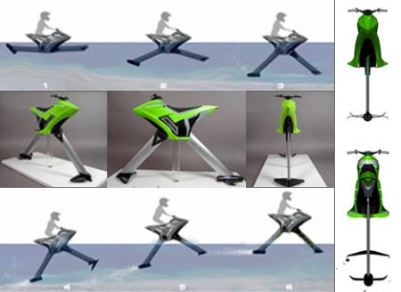 Это уже не первая попытка приделать подводные крылья водному мотоциклу, тем не менее, пожалуй, самая близкая к реальности. По мнению изобретателя, такие мотоциклы дают возможность испытать совершенно новые ощущения, больше схожие с ездой на обычном мотоцикле. Подводные крылья позволяют скутеру двигаться практически над водой, причем, ими можно управлять – поднимать или опускать в зависимости от глубины. Кстати, наличие крыльев намного уменьшает и создаваемый шум. Работает это все на 40-вольтном электродвигателе мощностью 20 ЛС, который сможет проработать 3 часа в результате 10-минутной зарядки. Неплохо! Но стоимость этой радости по оценкам автора концепта составит 15 тыс. долларов.